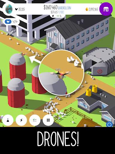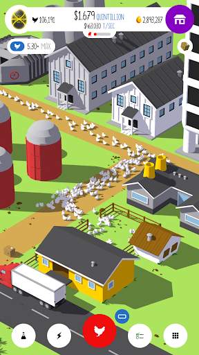 An incremental (clicker) game at its core, Egg, Inc. uses many elements from simulation games that give it a unique feel and play style. Instead of menus, you are presented with crisp and colorful 3D graphics and a delightful simulation of a swarm of chickens. In addition to choosing your investments wisely you must also balance your resources to ensure a smooth running and efficient egg farm.