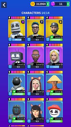 Collect new characters to help you play through all of the songs! Build a strong team and crush those beats! Open your chest to discover and unlock new powerful characters! Will you get the legendary Marshmello?
