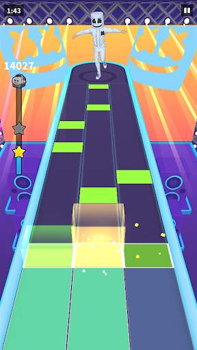 Do you like dancing? And do you like to relax yourself through dancing happily and forget everything else while you are in a bad mood. If so, this will be the perfect game for you. There are not too much restrictions for you in this game. You can just emerge into one with the Marshmello and move your body with the accompany of the music you like. Do not worry about the music, there are more than one songs in this game. Each player can find the music type they like. You can just stop thinking and fully enjoy yourself while dancing and listening to your favourite music. You will feel like you are as light as a feather. Of course, it is not difficult to play this game. On the contrary, if you are a fan of rhythmic music, you will feel it is a kind of enjoyment to play this game. Your body will like this kind of relaxing movement. What you need to do is very simple. You just need to tap on the moving tile while it reaches the designated yellow area. It just depends on your quick reaction and your instinct. But your should not relent your alertness, at first, it might not be that challenging enough. But after you play a while, the music will become long and there will be more tiles, which will be a challenge for most of the players. If your performance is perfect, you will be rewarded with gold coins. With these coins, you can buy yourself fabulous outfit. To sum up, unlike other similar dancing games, there are more music types available in this game. And there are more body moves that Marshmello can perform for you. Together, you can dance freely and perfectly. Nothing in this word can interfere your dancing speed and your dancing desire. It is your show and your solo. You are the sole master on this platform and it is time for you to shine. Now it is time for you to fully relax yourself and show off your talents to the world. Everybody in this world will hail for you. You will find yourself full of energy and free of worries of any kind. All the troubles in the real world has nothing to do with you. Your mind stops turning and your brain stops thinking, which always make you feel you are not good enough. Here you are the best. Just Feel young, Feel freedom, and Feel your true self!