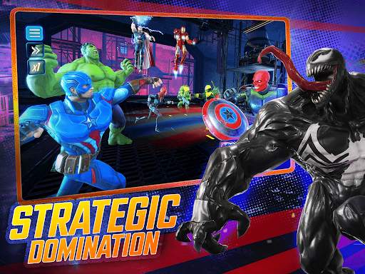Recruit your strike force and form a squad of powerful MARVEL Super Heroes and Super Villains like Iron Man, Captain America, Loki, Elektra, Dr. Strange, Venom and more.