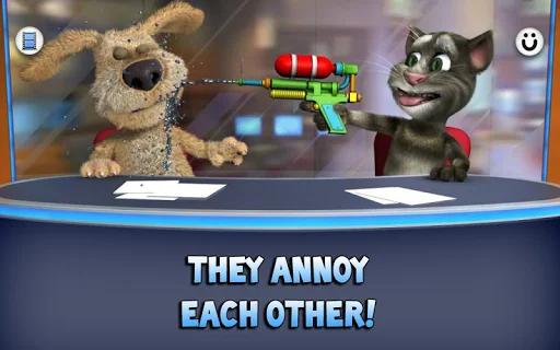 Now comes your game time. You can forget everything and enjoy a wonderful and happy time with Ben and Tom. They are waiting for you for a very long time. In this game, they will be news broadcasters. It is very interesting to play with them in this game. Say whatever you want to say and they will repeat the content in that way. Of course they will not judge you. They will be willing to repeat word by word. Besides, you can tease them by poking them with your finger and they will fall off from the chair, which is really hilarious. Of course, you can also do other funny tricks on them. You can let them spin. You can let them fight with each other. There is not so much restrictions, you can just be creative and try to play more interesting games with them. Or you can just be an audience and watch their performance. They will let you laugh a lot and forget all of your worries and leave behind all those miserable thoughts. If you are tired or if you're in in a really bad mood and you don't know how to relax yourself, it will be the best choice for you to try this game by releasing all your negative energy here. Tom and Ben are always here for you. At last you can take some videos for memory, or you can upload these videos onto YouTube and Facebook to share them with your friends. It is also a wonderful thing to let Tom and Ben repeat the secrete only known to you and your best friend and send the video to your friend and recollect your best time, which is very sweet, but remember to delete it. Anyway, this is a funny game. And this is a game for you to relax yourself and enjoy a period of happy time with Tom and Ben. You will find out that everything is so enjoyable. And you want to laugh all the time. The thing is that when you are playing with Tom and Ben, you suddenly realize that happiness is not expensive or difficult as long as you would like to open your heart and you would like to share your happiness with friends around you. It feels like your heart bathed in warm sunshine even if you sit indoors and play this game alone. So if you feel a little bit gloomy or you don't know how to let it out, just try this game, it will not let you down!