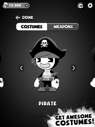 Collect weapons and level up your character. Improve your abilities by collecting and spending cans of delicious Bacon Soup. Customize your characters with never-before-seen costumes and episode-specific weapons. Celebrate your wins with exclusive access to official Bendy™ in Nightmare Run merch! T Shirts, plushies, posters, keychains and more!
