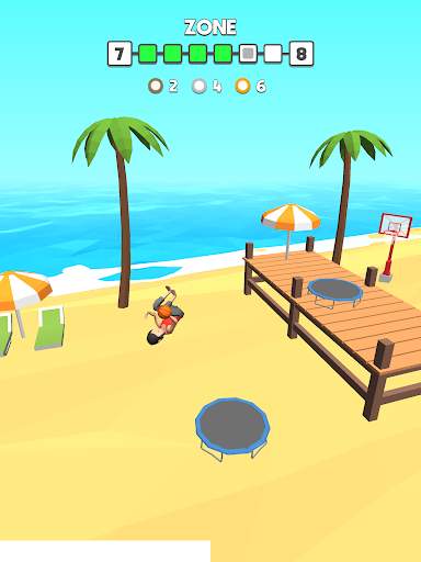 This is a really interesting arcade sports game. If you like to play sports game, you should never miss this one. As for the game play, it is very simple for you to play it. You can jump by tapping on the screen. And then you can hold your finger while in the air to flip. If you love playing basketball, you should definitely try this game. It will give you an opportunity to try different kinds of ball tricks. It is really exciting to experience the amazing tricks. But in your real life, maybe it is impossible for you to try dangerous tricks if there is no necessary protection available. But since this is a virtual game, there is no need for you to worry about the safety problems. You are free to do whatever you want. And you can try all the amazing flips. It feels so nice to complete different types of flips by taking advantage of the trampolines. It is very easy for you to become addicted to this game. You cannot help but want to try different kinds of tricks if you are a sports lover. And it will definitely give you a deep sense of satisfaction by successfully slamming the basketball into the hoop. Sometimes things may become annoying. And you need to try several times or even more before you can put the basketball into the hoop. But if you can manage to complete the task, you just could not find words to describe the happiness. And you will be so proud of yourself at this moment. You will feel like that you are the most coolest person or sports player under the sun. And every time when you feel unhappy or when you are in a blue mood, you always want to release some negative energy through doing some crazy flips. And it is certainly working. At the beginning, maybe you are a little bit clumsy from jumping down and slamming the ball into the hoop. But after you play for some time, you will realize that actually it is so fun. And you just want to challenge yourself again and again to perform a perfect flip. Of course, if your performance is good enough, you will be rewarded abundantly. And the most important thing is that you will fall in love with the whole exciting atmosphere. In each round, you will have a totally new scenario. So you will never get bored with this game. You will always have the chance to try something new. So once you get familiar with the pattern, you just feel like that this game opens a wholly new world for you. And it is so nice to play basketball in this new virtual world. It is much more wonderful them playing basketball in real life. So if you are a sports lover or a basketball lover, it is definitely worthwhile for you to spend some time in playing this exciting sports game. You will have a totally different adventure. And you would like to sacrifice your time to try those difficult tricks again and again until you can successfully perform the flip and slam the ball into the hoop. And if you want to move to the next round, or if you want to get higher score, it is better for you to do enough number of flips before landing the ball. There is no need for you to hold back your talents for playing basketball. It is the high time for you to show your talents as an excellent basketball player. You are free to try all the tricks. There is no need for you to worry about that you may make some mistakes. At first, you may come across some obstacles. But after you get familiar with the ball and the hoop. You will find that it is rather easy to complete all the flips. And do not be too harsh on yourself. The most important thing is to enjoy yourself. You must believe in yourself that you will be an ideal basketball player. And you must be brave before you jump down from a tall building or other structures. If you are afraid, it is very likely for you to miss your target. And you must use the trampoline timely to jump higher and get to your destination. So what are you still waiting for? It is time for you to start your sports adventure. I believe that you can perform your perfect flip. And you will definitely have a really great time. At last, this game is also a wonderful opportunity for you to improve your basketball skills. It may give you some insights about inventing your own basketball tricks. So it is definitely worthwhile for you to spend some time in playing this fantastic sports game when you have nothing else to do. If you are under a lot of pressure recently, you definitely deserve the chance to have some fun. It can help you get rid of all of your worries and problems. You will find that playing basketball in this virtual world is such a great enjoyment. You would like to stay here forever to polish your basketball skills. Even if you fail, you would like to try again and again. It is so addicting that there is no way for you to stop. And you will feel absolute freedom when you are jumping high into the sky! Nothing will prevent you from releasing your unparalleled basketball talents.