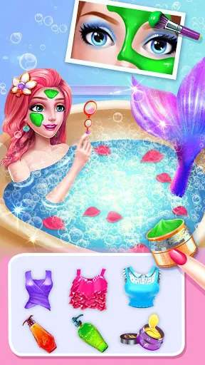 In this game, you will spend a really happy time with our pretty Mermaid under the sea. You will find a lot of wonderful things here. For example, you can see gowns of different colors and size; you will also find dancing shoes of different sizes and all kinds of objects are available for you to do the makeup. There are also all kinds of tools available for you to cut the hair, to wear some make-up or to put on some eye lashes. Anyway everything here is so romantic. And the whole atmosphere is so cheering. You can just forget everything else and immerse yourself into this atmosphere of party. And life under the sea is so wonderful and so beautiful. So it is time for you to join the mermaid under the sea and start your new journey. Your main job is to take the red-headed mermaid to the Seaweed Salon and help her get ready for the big ball tonight. There will be a lot of participants in this ball and you will be the stylist. So it is very important for you to dress our mermaid in the perfect way and make her shine tonight. There are a lot of job for you to do. First, you need to help her wash her hair and make a distinctive and exquisite hairstyle for her and try to make her beautiful and fashionable. Of course, you also need to help her do some make up for her face. Maybe you think it is a very easy thing to wear some makeup, but in this game you need to choose the perfect color according to the light and color of the dress and the color of her skin. In a word, you must make her feel comfortable and look beautiful. As for the gown, it is necessary to choose a fabulous gown which must be of the proper size and the perfect color and of ideal style. Don't forget dancing shoes. And if the color of the gown is not dark, you must not choose a pair of black shoes or a pair of gray shoes because the color of the shoes and the gown should be compatible with each other, so choose wisely and carefully, for each detail matters in this game. It is even better if you can find some accessories for her too. Generally speaking, this is a really interesting game, and it is for Free. And this game can also help you to improve your personal appearance management ability. There is no restriction for you. You can choose freely of the style and the color, everything is flexible. You can just use your taste to help our cute mermaid display her ultimate beauty. I believe that under your help, our cute mermaid would be the most shining one on the stage tonight and everybody will be amazed at her stunning beauty!