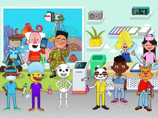 PEPI HOSPITAL has a wide variety of characters. Dozens of cute, cheerful and unique humans, pets, monsters, and aliens are there to have fun and join your playful exploration of the Hospital building.