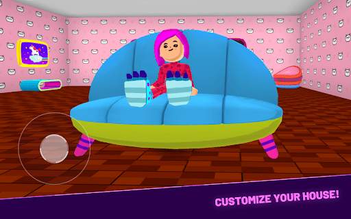Build your house, get new items, and decorate your home however you want. The only limit is your imagination! Here’s a sneak peek of what you’ll find: Puff cloud, dance mat, lava lamp, wallpapers, fluffy rug, gamer chair, pictures, fantastic fireplace, heart-shaped balloons, kitchen items, bathroom items, and so much more!