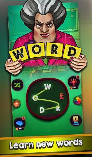 This is a really interesting game. It is very easy for you to play this game. You just need to solve all the word puzzles by swiping the letters horizontally, vertically, diagonally, forwards or backwards to form a specific hidden word. You will not only have a lot of fun, but also learn a lot of English words by playing this game. It is not about memorizing those English words mechanically. In this game, you will have a really scary teacher. And this teacher will force you to learn all these English words one by one. Of course, she will be really scary if you make mistakes. But she will help you learn all these new words first. So you must keep concentrating all the time. But if your performance is bad, this scary teacher will give you a lesson that you will never forget in your lifetime. Actually, this teacher is very clever and she's really good at teaching words. She will help you memorize all these words by playing some interesting puzzles with you. For example, she will ask you which animal is "the ship of the desert?" to help you better memorize the word "camel". And she will give you all the letters of this word. And what you need to do is to combine all these letters in the correct way to form the correct answer. And if your answer is correct, she will reward you abundantly. But if you keep making mistakes all the time, she will punish you. Believe me, this is a really addictive game. You just want to keep guessing and guessing. There are also some crossword puzzles for you. Some of them are easy. Some of them might take you some time. But all of them are really designed in a creative way. Generally speaking, this is a really wonderful game for you to test your vocabulary and spelling. If you are a fan of word puzzles, you will experience a lot of different things by finishing all those searching and crosswords in this game. The whole process of solving all these puzzles can really challenge your vocabulary and help train your brain. But of course, it can definitely enhance your vocabulary. The thing you need to remember is that Miss T in this school is a really strict teacher. She is the most cruel and evil teacher. And every student in this school is scared of her anger and punishment. So you need to help the students of Woodhill to defeat this new teacher. WOW, you're solving all the exciting word puzzles. You will find all the words with the given letters and connect them in correct order to show her how smart and how wonderful you are. Maybe it sounds easy, but once you try it for yourself, you will find that it is really challenging, especially with Miss T observing your every move. Anyway, it is time for you to overcome all the challenges set to you by this scary teacher. You will find that it is easy for you to play this game. But if you want to be the master, you will find that you need to try harder. But you must try your best to find as many words as possible to unlock other new levels and earn extra bonus coins. It is also a really wonderful alternative for you to spend some time with your children in the game. You will not only have a really happy time in this game, but also learn a lot of words together!