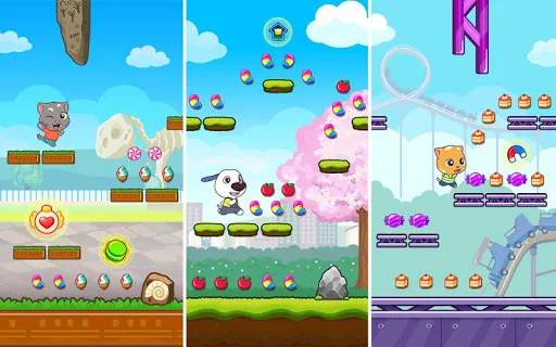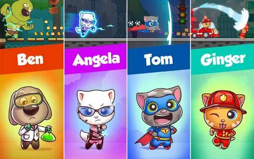 An amazing new endless runner adventure starts now. The robber has stolen your candy, but he is dropping it everywhere - along the street, at the beach, even at the amusement park! Choose your favorite Talking Tom and Friends character and get ready to run, jump, and slide your way through an epic, candy-filled adventure. Pick up chests to get free coins, diamonds, new characters, and character upgrades. Chase after the robber together with fun buddies who will help you with their awesome special abilities.