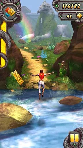It cannot be denied that nowadays there are numerous Parkour games on different platforms. All these games have their own distinctive features. And some of them are popular around the world. Temple Run is one of them. The graphics in this game are awesome and the best. The colors in this game are more vivid and make everything more real. In terms of music, although the music in this game is not that kind of rocking or shocking, it is more rich and different scenes are accompanied by different music styles, which can help players keep a good mood all the time. Generally speaking, it is not that kind of easy to play this game. There are a lot of tasks. And to successfully complete all these tasks, you need to react quickly and run fast at the same time, which is difficult. You also need to learn to jump, slide and make turns at the appropriate time to avoid all those obstacles. The longer distance you can run, the higher score you can get. In this game, you will have a chance to resurrect. Your score will not be influenced, and you will not be punished to go back to the starting point. But you need to pay gems to resurrect. Actually, it is OK for you to go back to the starting point and run from the beginning. Anyway, the experience and the feeling of playing this game are the most important thing, not the score. If you are a collector, you will have a great opportunity to collect different types of masks in this game. The owners of these masks have their own respective superpowers. For example, the Guy Dangerous can release the superpower of shielding. With this shield, you can ignore many obstacles like fire, fallen trees, the broken doors and the stone ladder. But remember it can only protect its master for once during a limited period of time. After that, it will lose its magic. Scarlet Fox can give you the right of ignoring all those traps. You just need to run forward and you will feel like that you are invincible because all those traps will be useless for a period of time. And Barry Bones can give you all the gold coins around the world. And there are other wonderful characters who can release different superpowers, you can just try for yourself. Anyway, this is a Parkour game into which its producers put into a lot of energy and imagination. Every detail is perfect. It is definitely worthwhile for you to spend time in exploring this magic temple. Once you are out of this temple, you will find yourself invincible!