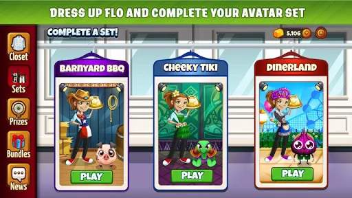 Dress up Flo in fun outfits themed for each Show, and equip Pets to help you out in the kitchen by auto-serving Prep Recipes!