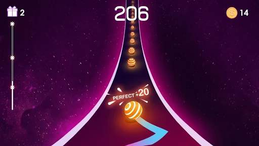 This is a highly recommended music game. The whole atmosphere of this game is really relaxing. It will bring you into a totally different world. It is very easy for you to become addicted to this game since there are so many amazing songs. You will definitely love it if you are a fan of music games. It feels so wonderful to control the colorful balls rushing forward while enjoying your favorite music. Nothing can be better than this. There is no need for you to pay for any songs included in this game. You can enjoy a lot of fantastic soundtracks for Free. And there are various music genres available. So you can definitely find your favorite music. Another thing you should know is that all these songs are of high quality. So the whole gaming experience will be better if you put on your headphone while you are playing this game. And it is so exciting to roll the ball and feel the beat in this music world. It can help you forget all of your worries and burdens. Life becomes so beautiful all of a sudden. Actually, it is very simple for you to control the balls. If you have no experience in playing similar music games, you can just start with the practice mode in which you will learn the basic skills of holding, dragging and swiping to control the ball. There is no need for you to worry about the ball controlling skills. After you practice for a while, you will find the right trick. And once your performance is good enough, you can try the multi-player levels in which you will have levels of increasing difficulty. Here you will have a chance to take more challenges. Even if it will be more difficult for you to complete the level, but you will definitely like the Galaxy Theme. The original background music will also take you into a totally amazing world. You will feel like that you can stay here forever. So it is time for you to roll the ball to match other balls of the same color under the Galaxy sky background. Of course, it is also necessary for you to collect all the gold coins and gift boxes on your way to unlock new treasures in the music box. As you can see, this is a great test for your hand-eye coordination, especially when the ball suddenly hops from one color to another. You must react very quickly to catch the ball of the right color. It is very important for you to keep concentrating on the movement and the color changing of your ball from time to time. If you fail to recognize the right color, it will be the end of the game and you need to start all over again. As a philosopher once said that "music can be the most effective antidote to all of you worries". So when you have a bad mood, it is definitely good for you to play this music game. When you are rushing forward with your favorite ball at a crazy speed, you will find that. all of your worries and troubles are left behind. So this game can make your day better. It can help you release all of your negative emotions and energies. It can calm your mind and relax your mood. So it is not just about killing your free time. It is also good for your mental health to play this game. At last, it is not very easy for you to get bored with this game, since it includes so many popular songs. You must know that in other popular music apps, if you want to enjoy all these popular songs, you need to pay for them beforehand. But in this game, all of the songs are totally for free. And each of these amazing songs will bring you into a totally different world. Now it is time for you to show your true ball-bouncing talents and unlock new songs!