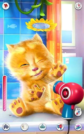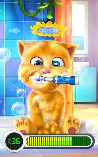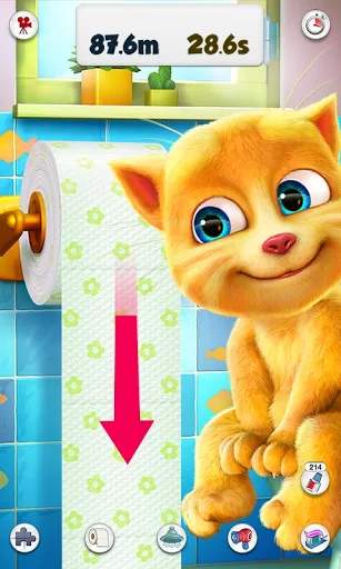 - Play games with Ginger: Pop toothpaste bubbles, roll down the toilet paper and play the jigsaw puzzle game.