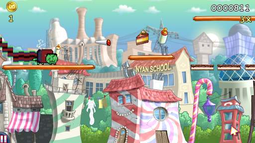 It is time for you to start your space journey with Nyan cat. You will have a really great time with your cat. Technically speaking, this is a Parkour game. But this game is unlike traditional Parkour game. In the similar Parkour games, you just lead an animation figure to run on the ground, at best, on the roof of some objects. But in this game, you will fly among the stars and over the rainbow with a cute cat. Can you imagine that? Flying over the beautiful rainbows with cute Nyan cat. This will be a really beautiful and sweet memory. You will definitely enjoy yourself a lot. If you are a skilled player in terms of Parkour games, you can perfectly handle this game. Even if you come across some problems, you can find your own way to fly over the rainbow with your cat. But the most important thing is to enjoy yourself and enjoy the wonderful and comfortable feeling of being surrounded by many, many delicious foods, shining stars and by those colorful rainbows. Maybe you once experienced all these fairy things in your dream. But in this game, all of these things will come true because each detail is so real, which means that your space-flying dream will come true in this game. And you will definitely like this unprecedented journey with the light-hearted background music. Everything here is so refreshing. So when you have nothing else to do or when you have a really blue mood, it is definitely a perfect choice for you to enjoy yourself for a while in this mysterious universe. And Nyan cat is always waiting for you. It is very simple for you to control this game. You can just guide your cat to eat food items, including donuts, milk and other delicious food to earn more scores. And if you would like to, you can try the multiplayer mode with your best friends and see who can run farther. Actually, there are several modes in this game. In each mode, you will have a totally different game experience. You will feel like that you are traveling through different worlds. The background music also varies from mode to mode. And the most exciting thing is that you will have the chance to get different power-ups in different modes. If you have enough time, it is definitely an exciting thing to explore each corner of this wonderful world. But since you are flying in the sky over those rainbows, you must be careful and pay attention to the road ahead. If you fall into the black hole located at the bottom of the screen, which will be the end of the game. So it is very important for you to keep focusing on flying from this rainbow to another rainbow and always keep jumping and running forward, which means that you cannot get distracted while you are playing this game. Your full concentration is the key for you to win. But it feels so good to cover a long distance in a short time. And it feels even better to collect gold coins. So as long as you have confidence in yourself, you can help Nyan cat discover more universes and make a new record. You can just be relaxed and give yourself the full right to enjoy the feeling of freedom. It will be a great pity for you to miss this interesting game because you will have so refreshing experience and breath-taking moments in this game. It can help you get rid of all the monotonous feelings that smothered you to boredom in your real life. Everything is so enjoyable here. And you feel like that you want to stay here forever with Nyan cat and with those wonderful food items. This is a world of fairy tale! So it is time for you to fly into the space with your cat. Of course, sometimes you may drop into the darkness. But you should never give up. Without you, how can your Nyan cat make the record on its own?