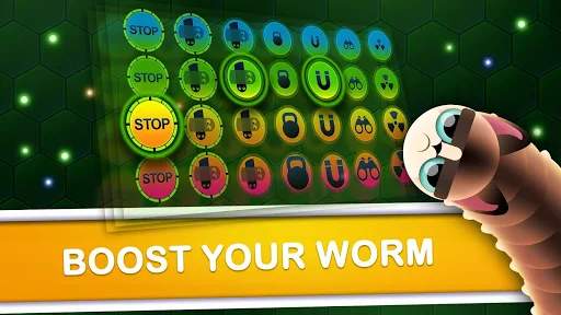 Use various boosts that increase the worm's mass, grow & get more food, provide acceleration without losing points or make the worm's mass toxic and dangerous for your snake rivals.