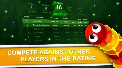 Practice your snake game skills! Grow bigger. Build up your account rating and receive essence for passing to another League.